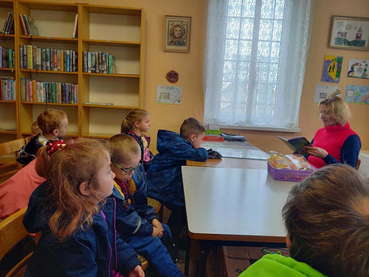 V rámci týdenního téma o knihách, jsme dnes zavítali do místní knihovny. Paní knihovnice nás seznámila s provozem knihovny, ale i nám přečetla kousek příběhu z knihy.
