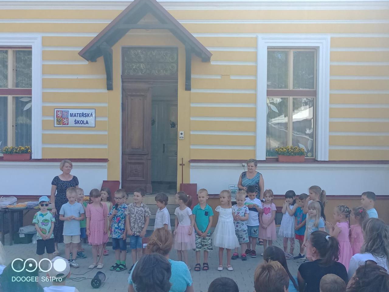 Bylo krásné slunečné odpoledne a my se všichni sešli abychom se rozloučili s končícím se školním rokem, s našimi předškoláky, ale také i paní učitelkou...